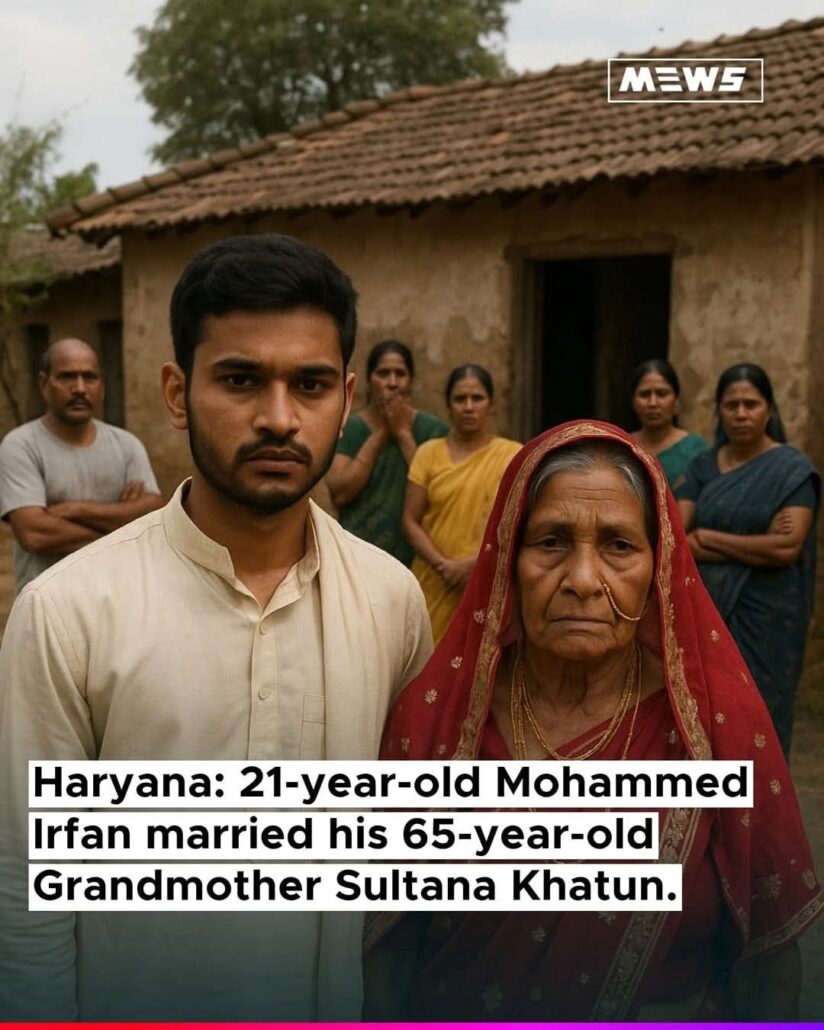 An image has gone viral on social media claiming that a 21-year-old man named Mohammed Irfan from Haryana married his 65-year-old grandmother, Sultana Khatun.