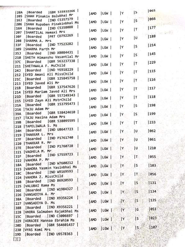 Of the 230 passengers on board, 169 were Indian nationals, 53 were British nationals, 1 Canadian national, and 7 Portuguese nationals, according to initial documentation reviewed by The Kashmiriyat.