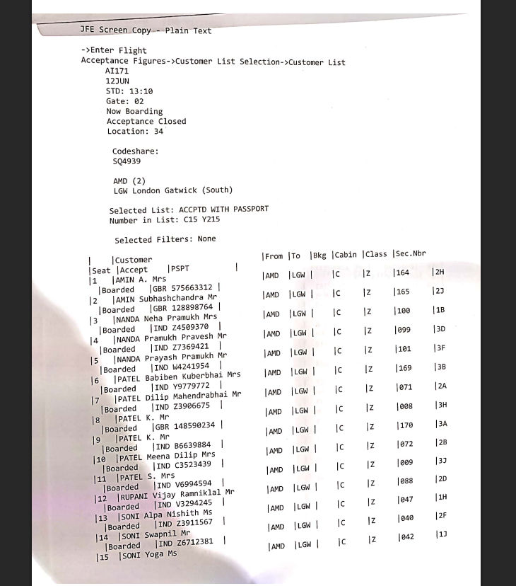 According to official information, a total of 242 individuals were on board: 2 pilots, 10 cabin crew members, and 230 passengers. The flight was commanded by Captain Sumeet Sabharwal, with First Officer Clive Kundar as co-pilot.