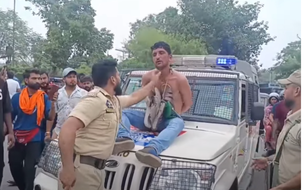 A man accused of theft was paraded through the streets of Jammu on Tuesday, wearing a garland made of shoes and briefly seated on the bonnet of a police vehicle, in an incident that has drawn sharp criticism and prompted an official inquiry.