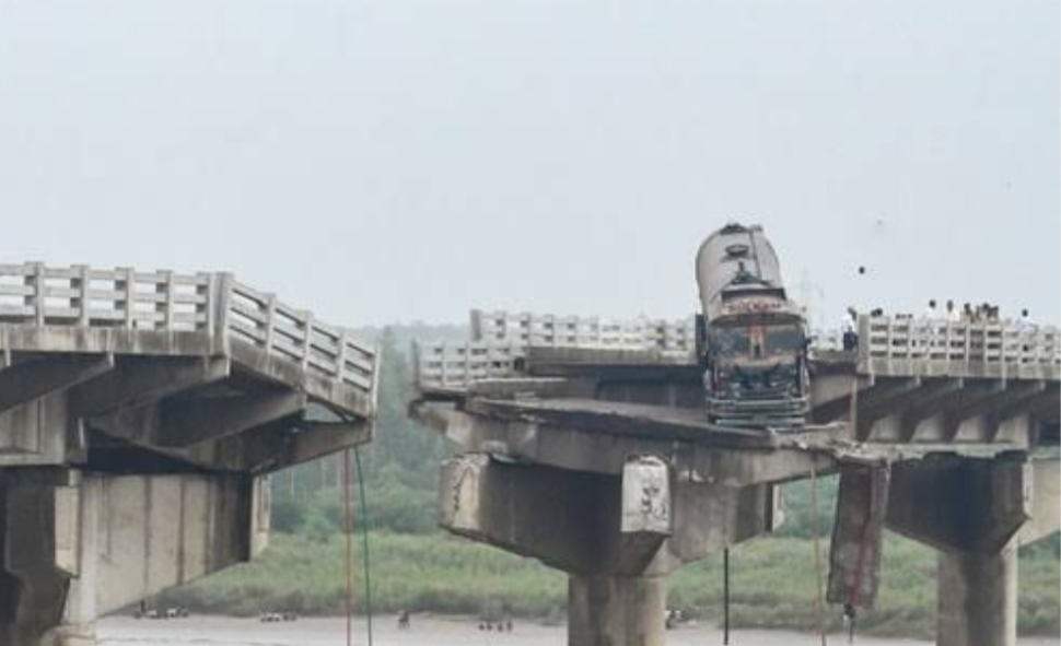 The collapse sent multiple vehicles plunging into the Mahisagar (Mahi) River below.