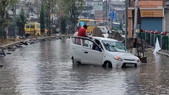The situation is worst along the Ratnipora–Gulbagh stretch, where pedestrians and vehicles struggle through stagnant water. Locals say the recurring flooding has made life unbearable.