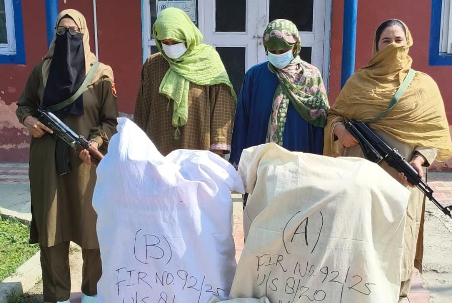 Officials said that during a routine checkpoint at Melhura Zainapora, police personnel intercepted two women moving suspiciously while carrying large bags. Upon searching the bags, police recovered about 15 kilograms of crushed cannabis and one kilogram of a charas-like substance.