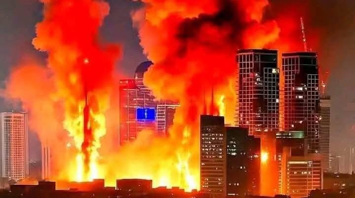 Photos from the scene show burning structures and shattered apartment blocks. Rescue teams worked through the night, pulling civilians from under rubble and clearing debris.